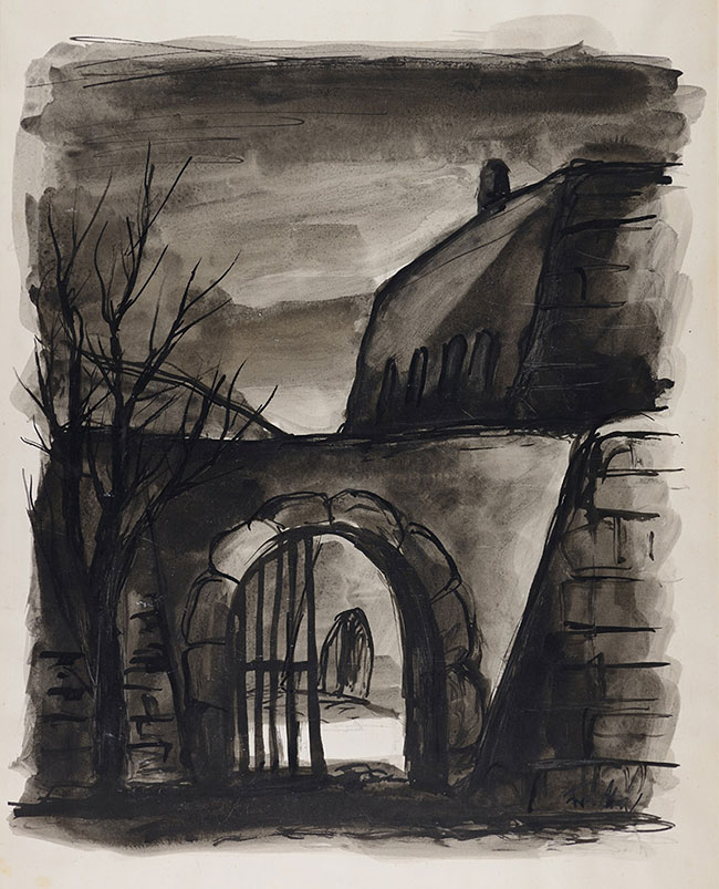 “Rear Entrance, Theresienstadt Ghetto” (1941-1944) by Bedrich Fritta, Yad Vashem Museum, Israel, Image courtesy of Yad Vashem Collection