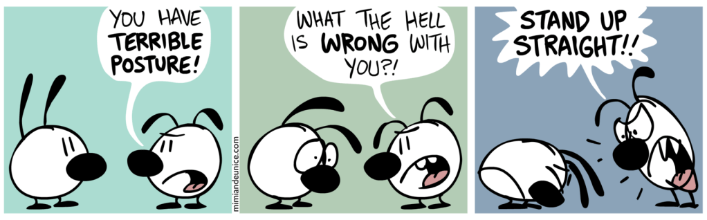 Mimi & Eunice Cartoon:  “Posture”, Source https://mimiandeunice.com/2011/10/20/posture/, Author Nina Paley, (CC BY-SA 3.0 Unported)